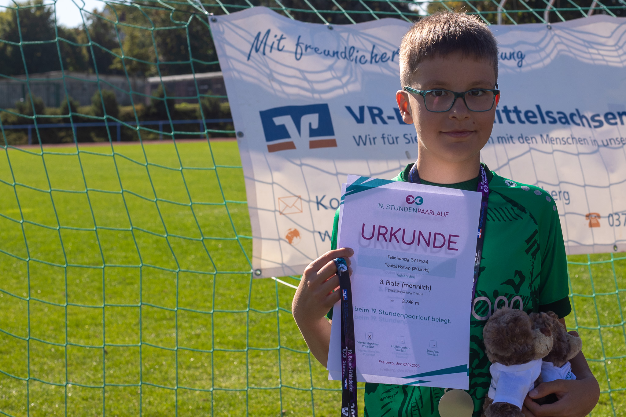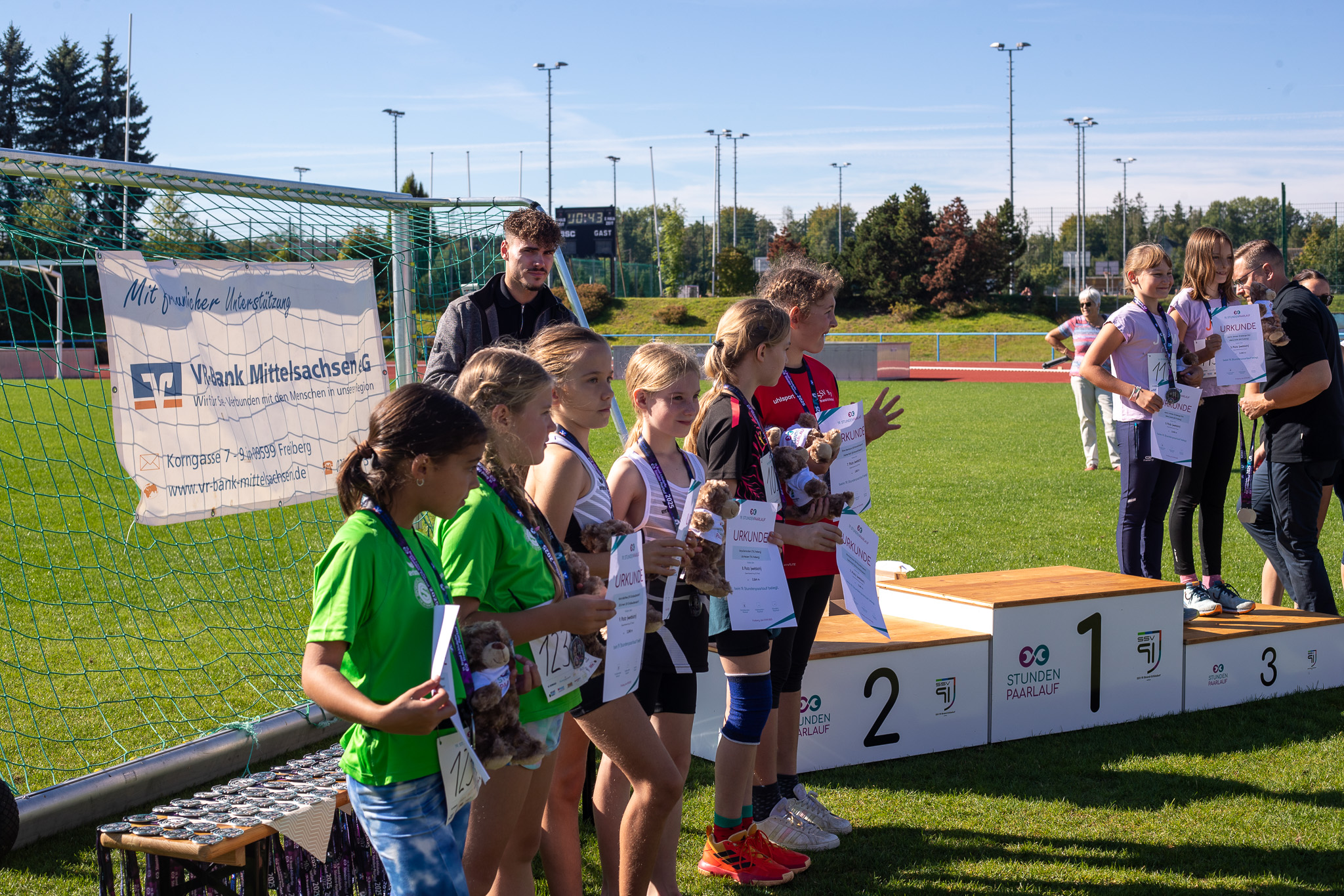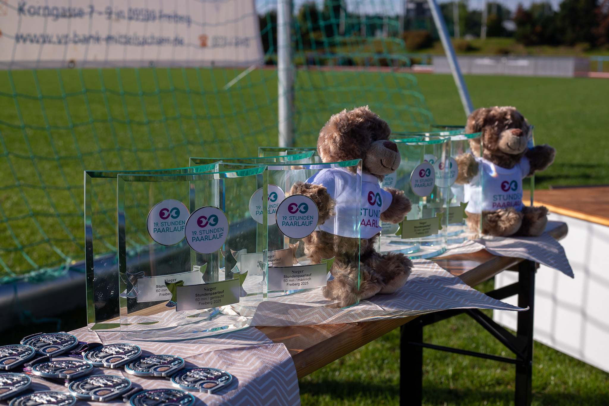 Es gewinnt das Laufpaar mit den meisten zurückgelegten Metern je Lauf. Jeder Teilnehmer erhält eine Erinnerungsmedaille. Die Gesamtsieger jedes Laufes erhalten einen Pokal. Für die Kleinsten haben wir eine Überraschung parat.