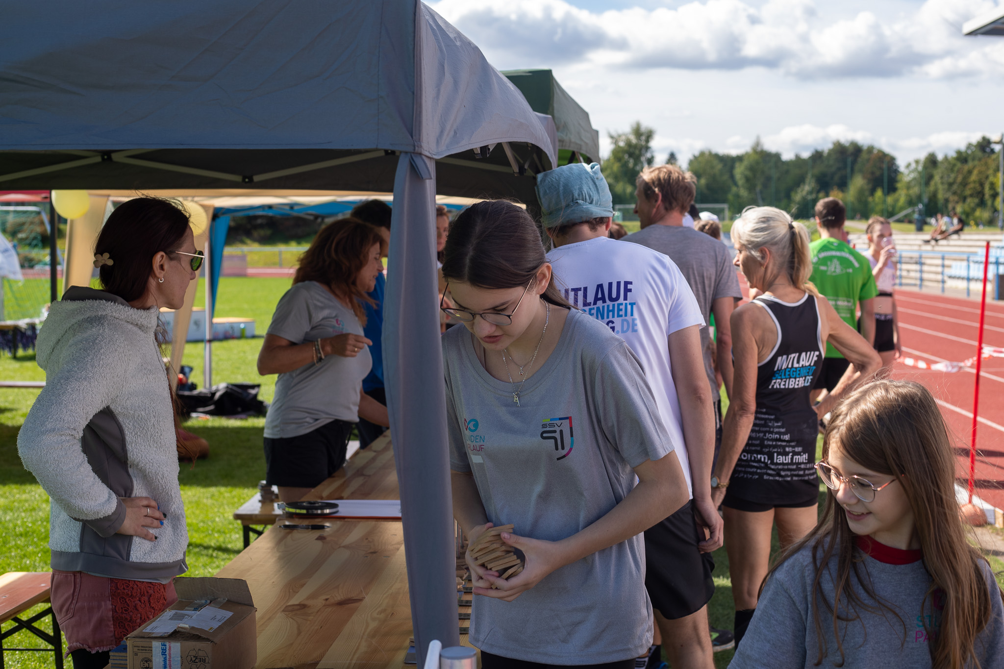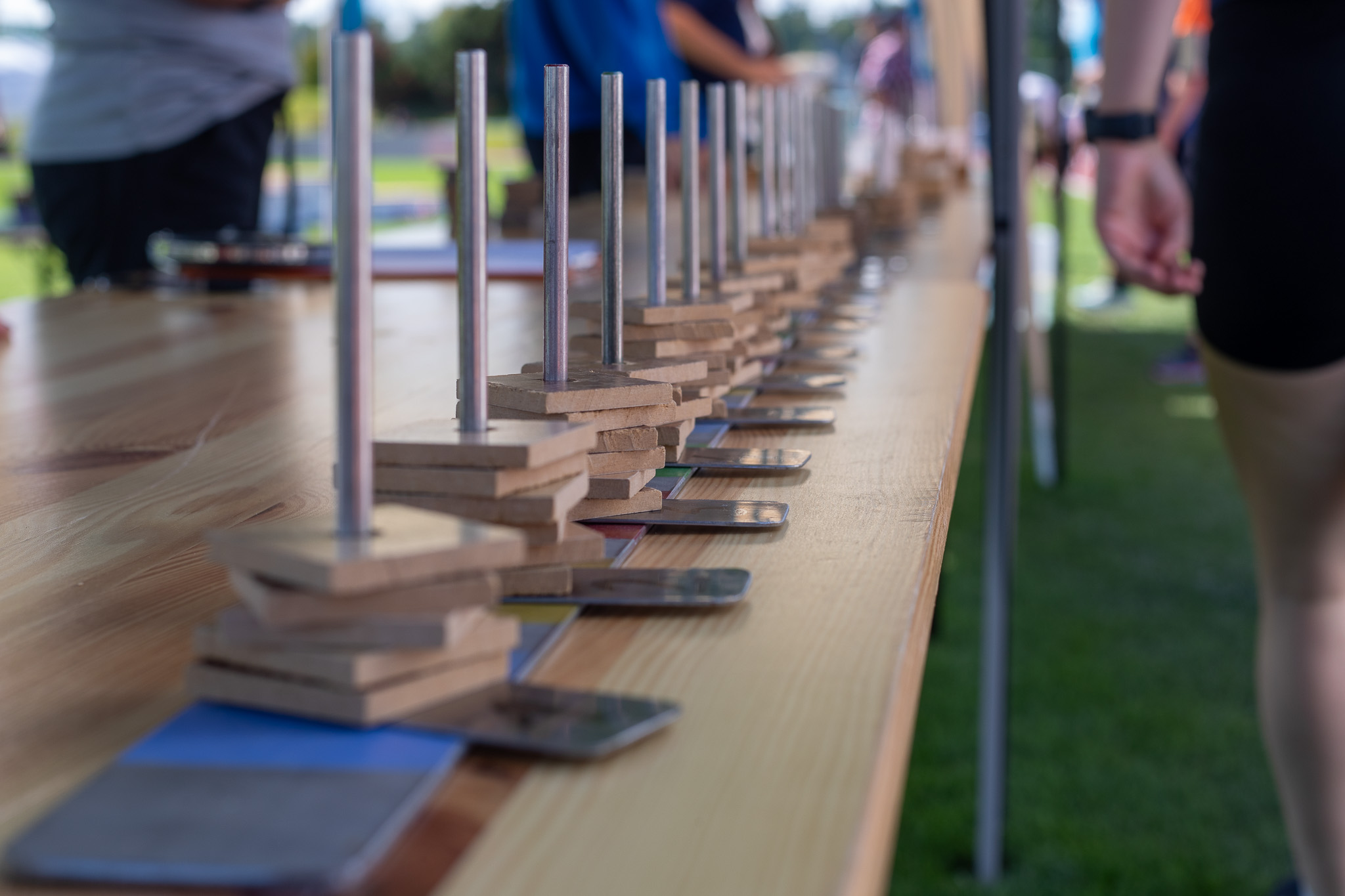 Jedes Team steckt eigenverantwortlich nach jeder gelaufenen Runde ein Klötzchen auf eine Nadel mit seiner Startnummer. Zum Schluss wird dies in Meter umgerechnet plus der Meter der angefangenen letzten Runde.