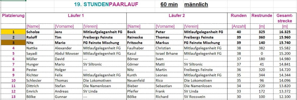 Siehe Ausschreibung auf der Homepage www.stundenpaarlauf.de